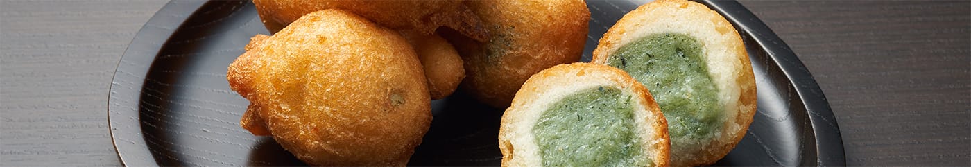 程よく甘いドーナツ生地とよもぎの香りがほのかに薫る
